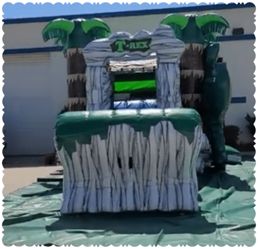 A blast from the past has arrived, T-REX!!! This King of the dinosaurs Wet or Dry Bounce House two - Lanes Water Slide Combo is bad to the bone. You'll be STUNNED. You'll be THRILLED. Roarrr in Joy as you Jump around in the bouncy area then 2 little Dinos can slide down into the splash pad. Our T-REX Combo Commercial grade is lead free, and fire resistant vinyl. Safety rules are displayed, best safety net to ensure safe fun. Let the adventures of the prehistoric past begin with the world's oldest party animal and reserve today. Covering areas, but not limited too. University Park, IL, Crete, IL, Stegar IL, Matteson, IL, Park Forest IL, Monee, IL, Tinely park IL, Frankfort Delivery Area Page
