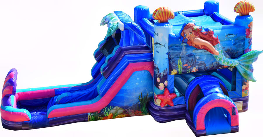 Ready for a Mystical Adventure? Bring your guest under sea with our Enchanting Mermaid Combo. Activities includes the bouncing area, basketball goal, wall climbing and 2 lanes to slide right under the sea in small pool. Everyone that sees this falls in love, this wow factor with 3D Mermaid guaranteed to be a hit! What are you waiting for? Let the ocean magically come to you, and leave memories that will last forever. Proudly servicing but not limited to the Crete IL, University Park, Monee, IL Stegar IL, Matteson IL and more. Delivery Area Page